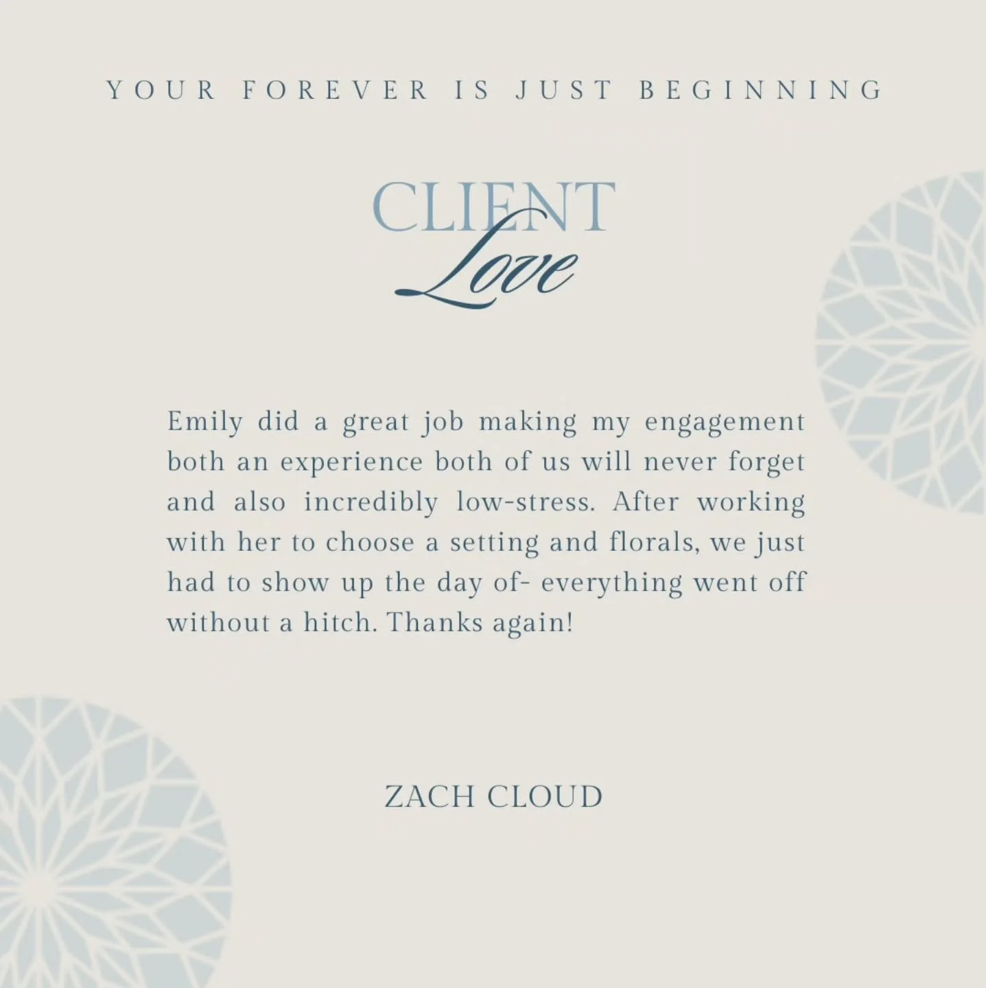Upon final payment confirmation, we’ll send you a detailed On-Day Timeline with instructions on how to make your proposal day unforgettable.